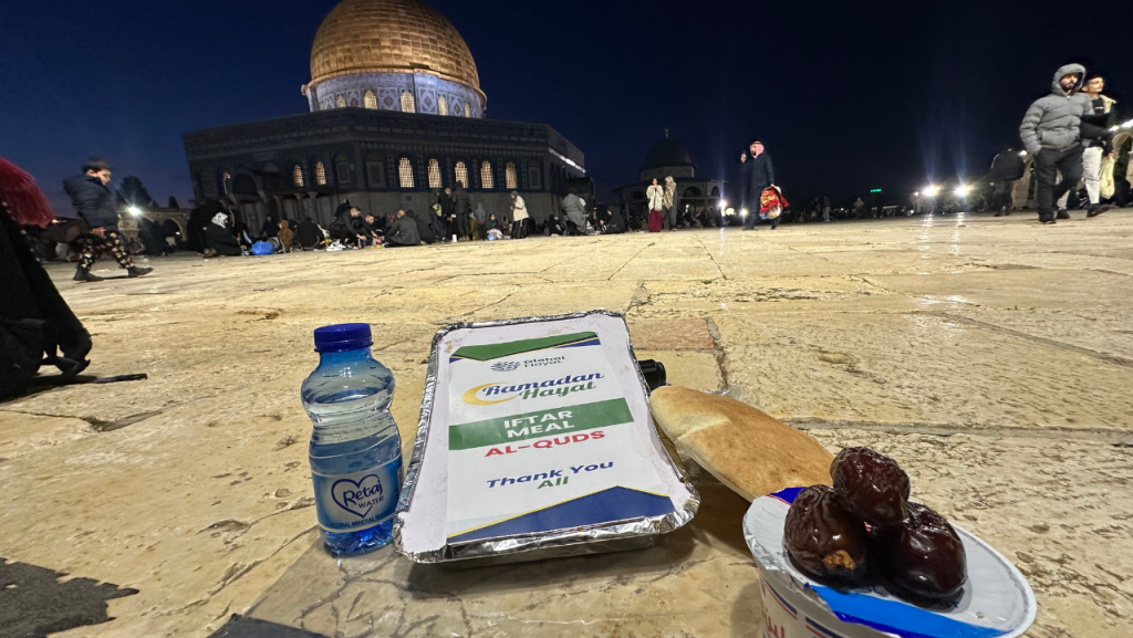 Global Hayat–Malaysia prepared and distributed 120 Iftar meals in the courtyards of Al-Aqsa Mosque (Jerusalem) as part of the Ramadan